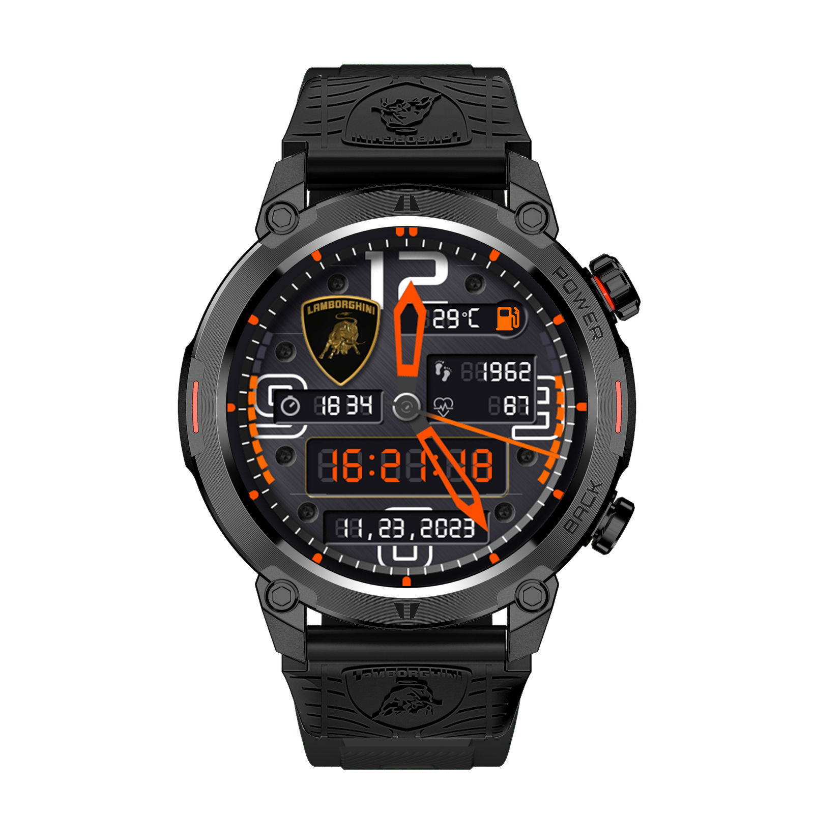Diseñado para la máxima comodidad, cuenta con correa de silicona de alta calidad y compatibilidad universal con Android 5.1 e iOS 10.0 en adelante. El Lambo Aventador Ultimae no solo es un smartwatch, es un símbolo de estilo, funcionalidad y resistencia para un estilo de vida dinámico.